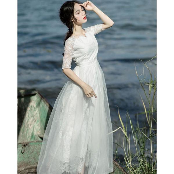 春の新作 ワンピース 白ワンピース マキシワンピース レースワンピース ドレス パーティードレス ウェディングドレス リゾートワンピ 無地ワンピ ホワイト カジュアル ロング丈 旅行 海デート リゾート の通販 価格比較のビカム